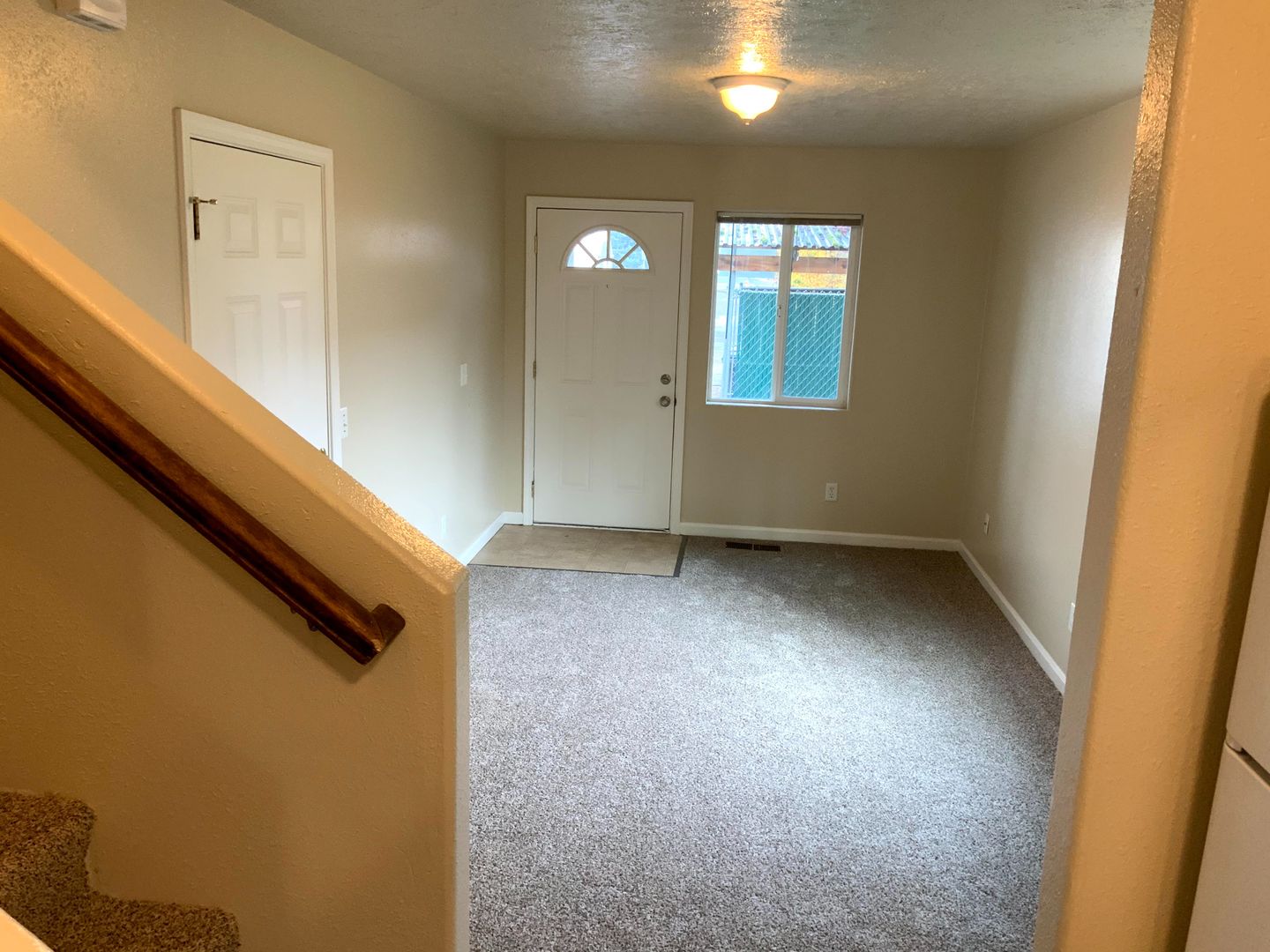 4 bedroom, 2 bathroom duplex home in east Springfield. 3 bedrooms and a full bathroom upstairs. Other bedroom, bathroom, living area and kitchen on lower level. Small fenced back yard area. 1 car garage, w/d hookups and off street parking (2 cars max allowed in front of garage, parked parallel).
