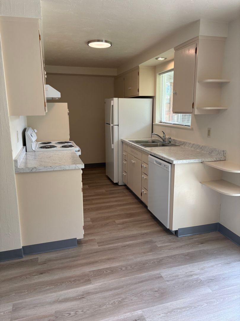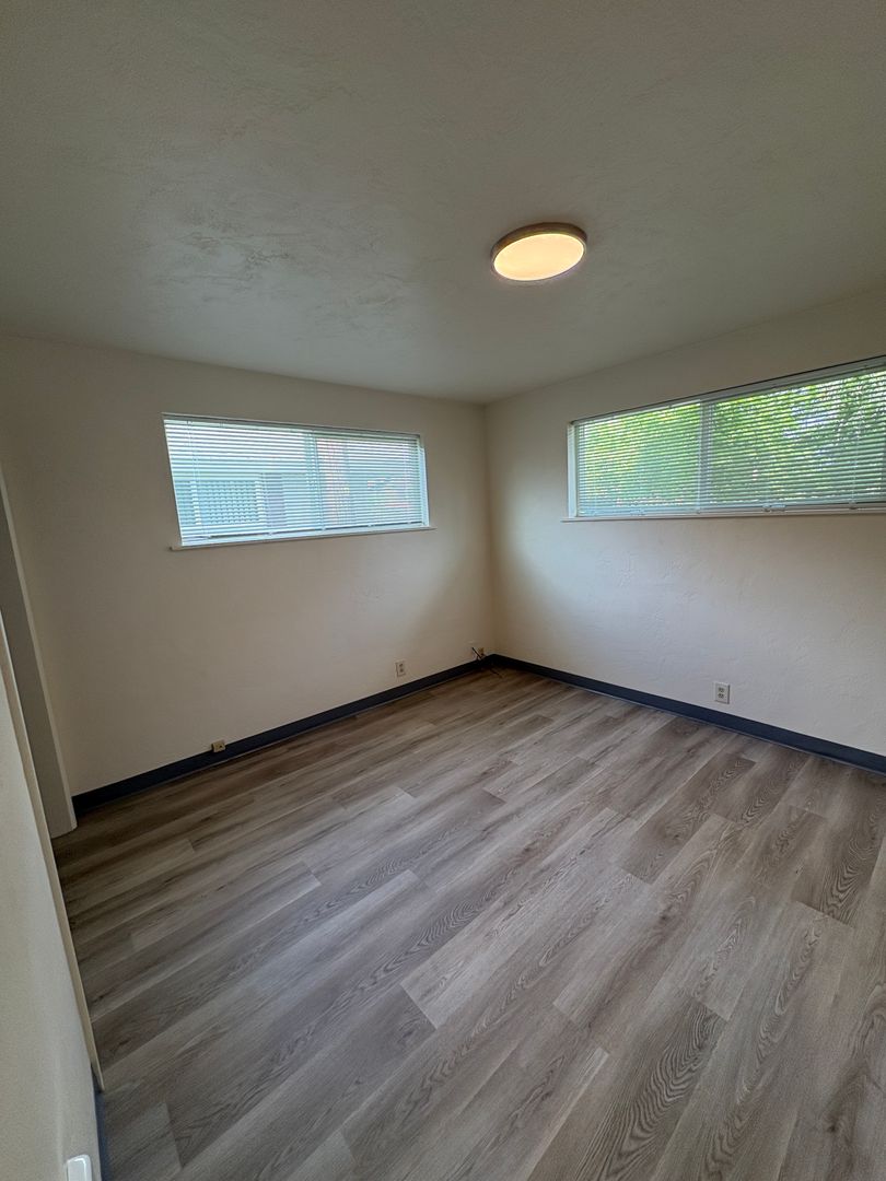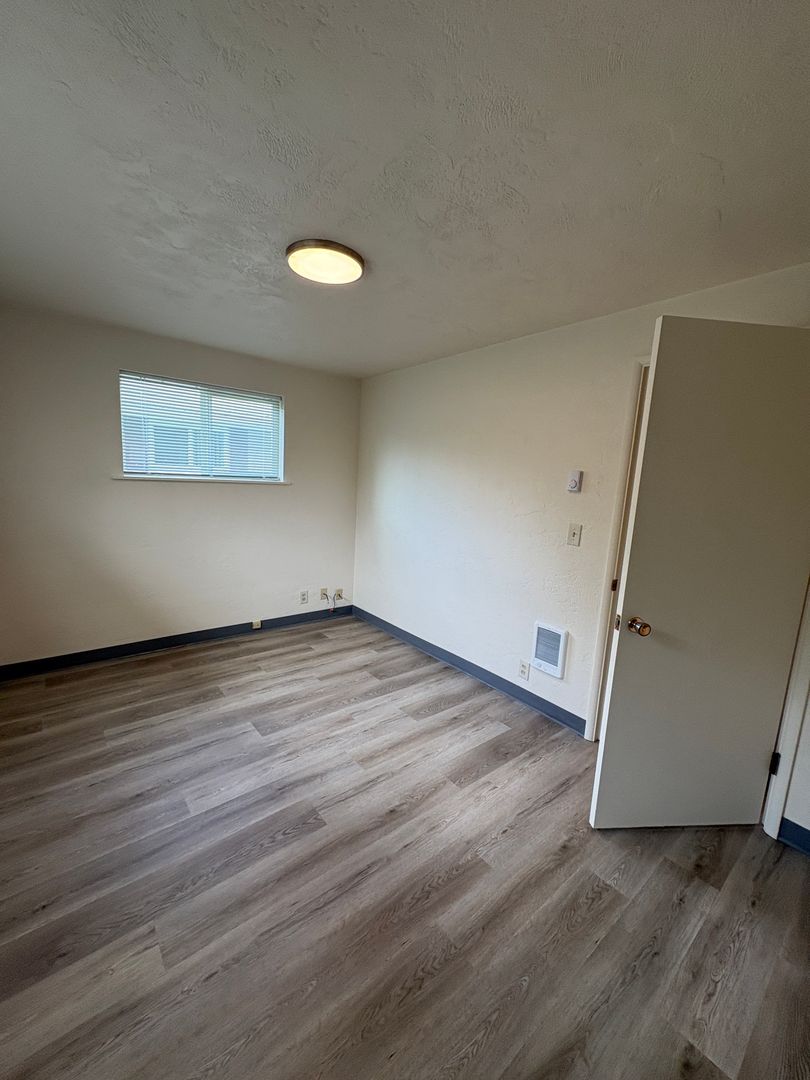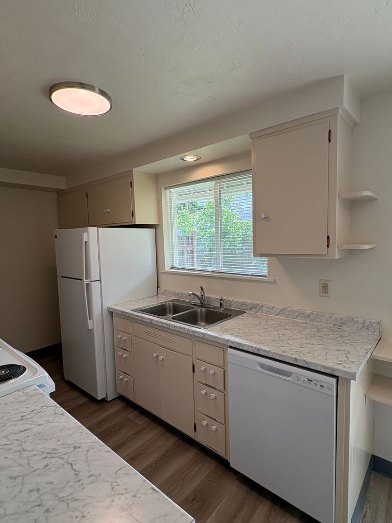 Freshly updated 2-bedroom, 1-bath duplex in Eugene's Cal Young neighborhood. The kitchen has been fully refreshed with a new fridge, stove, dishwasher, and hood vent, plus freshly painted cabinets. Fresh paint continues throughout every room as well as new updated LED lighting. The living room features a usable fireplace and ceiling heat throughout keeps things comfortable year-round during the colder seasons.