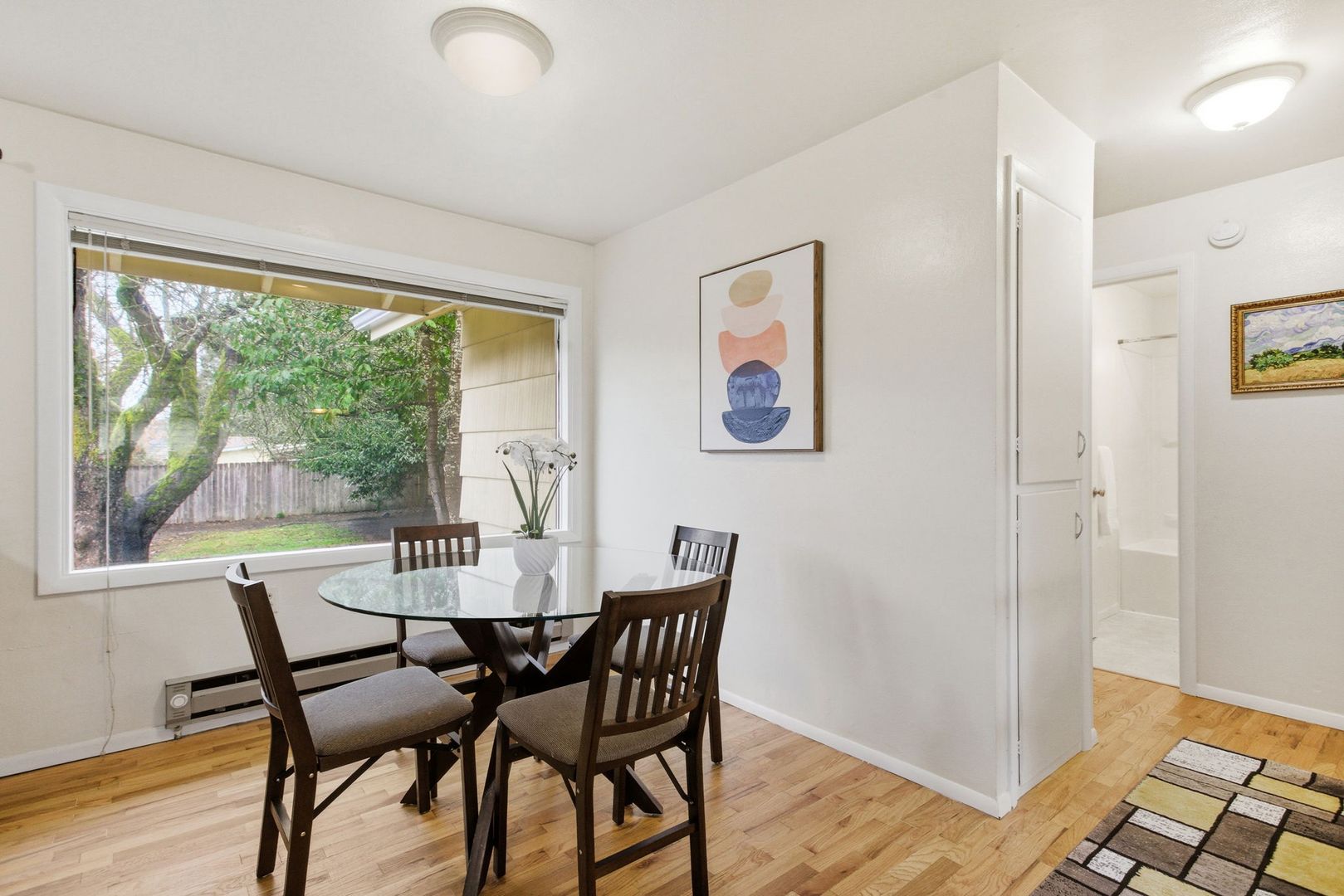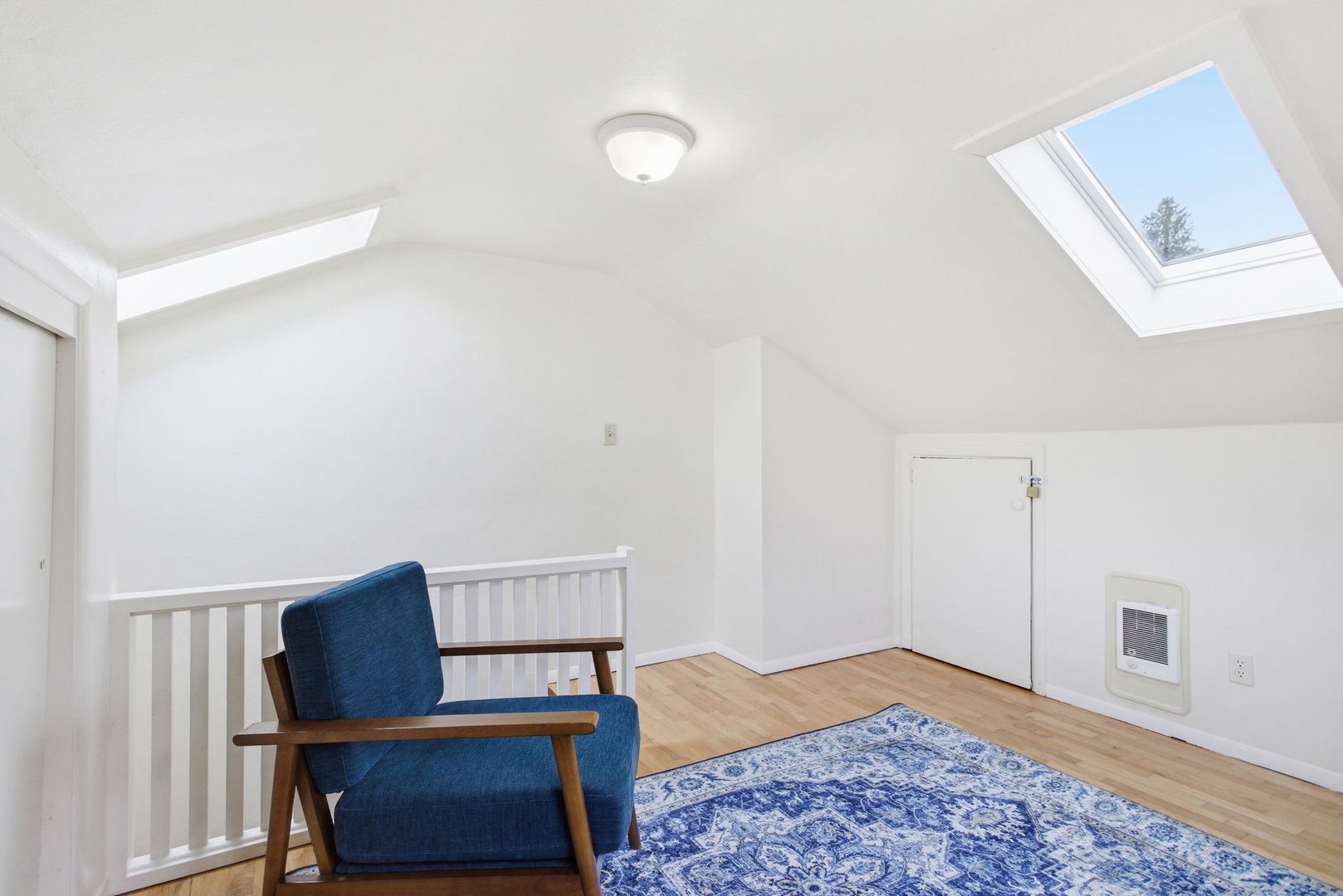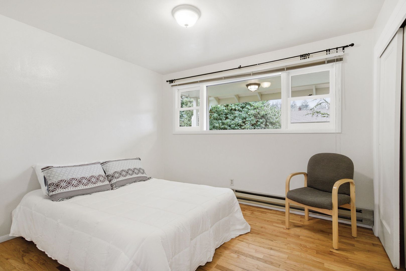 Cute 3 bedroom, 1 bathroom house on quiet street in convenient S. Eugene neighborhood. Hardwood flooring and vinyl throughout. Stainless dishwasher and range along with updated countertops in the kitchen. Skylights in 2nd story bedroom offer ample natural light. Ductless heat pump with A/C and Fireplace. Washer/Dryer included. 1 car garage & private fenced backyard. *House does not come furnished*