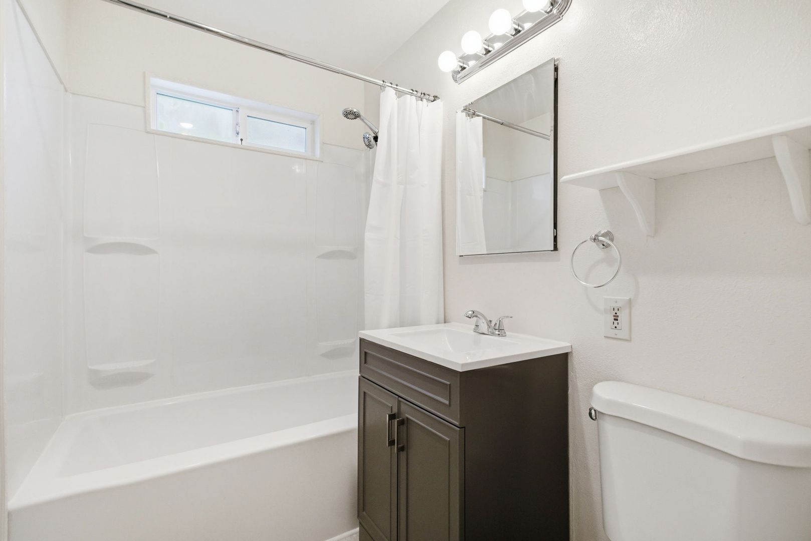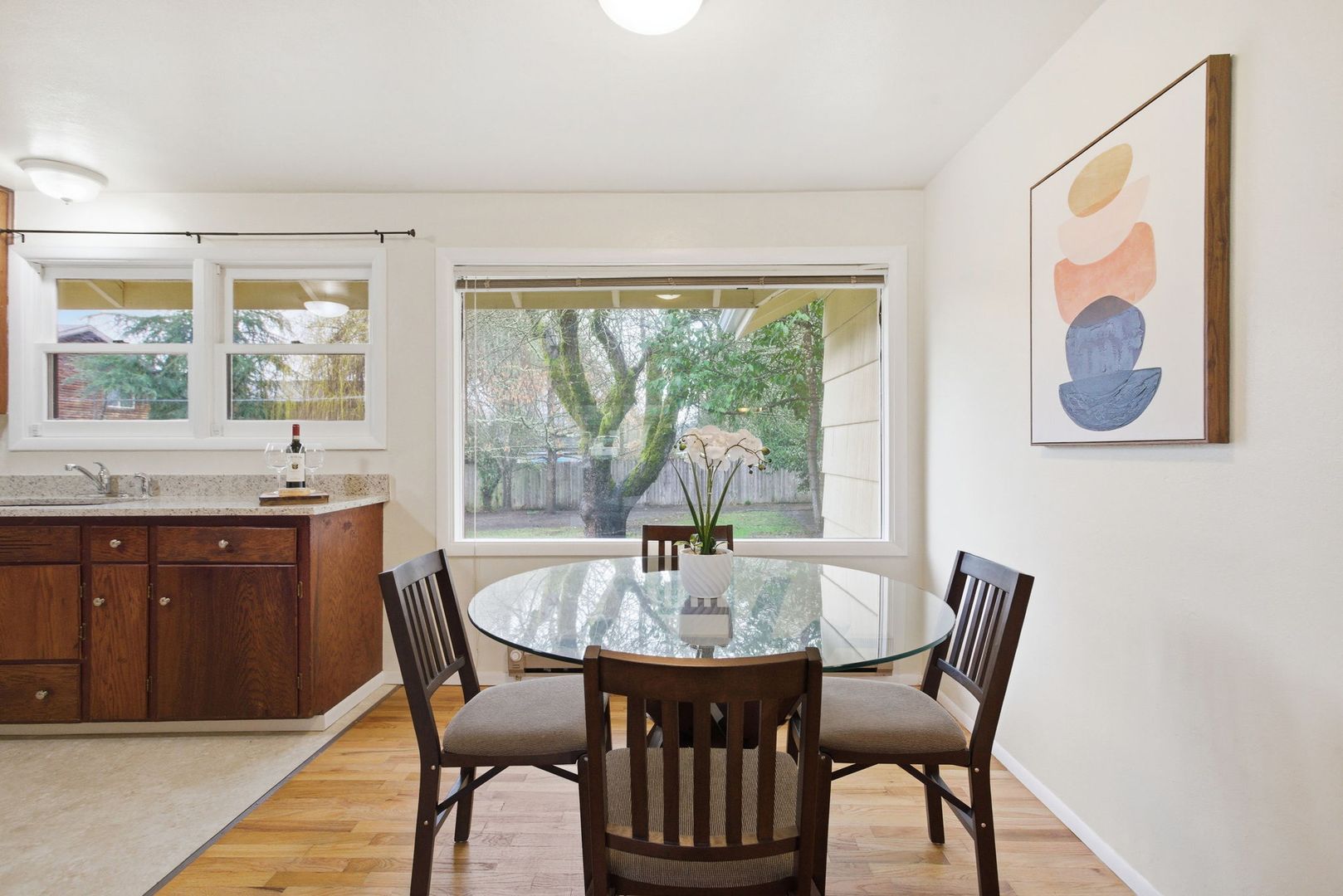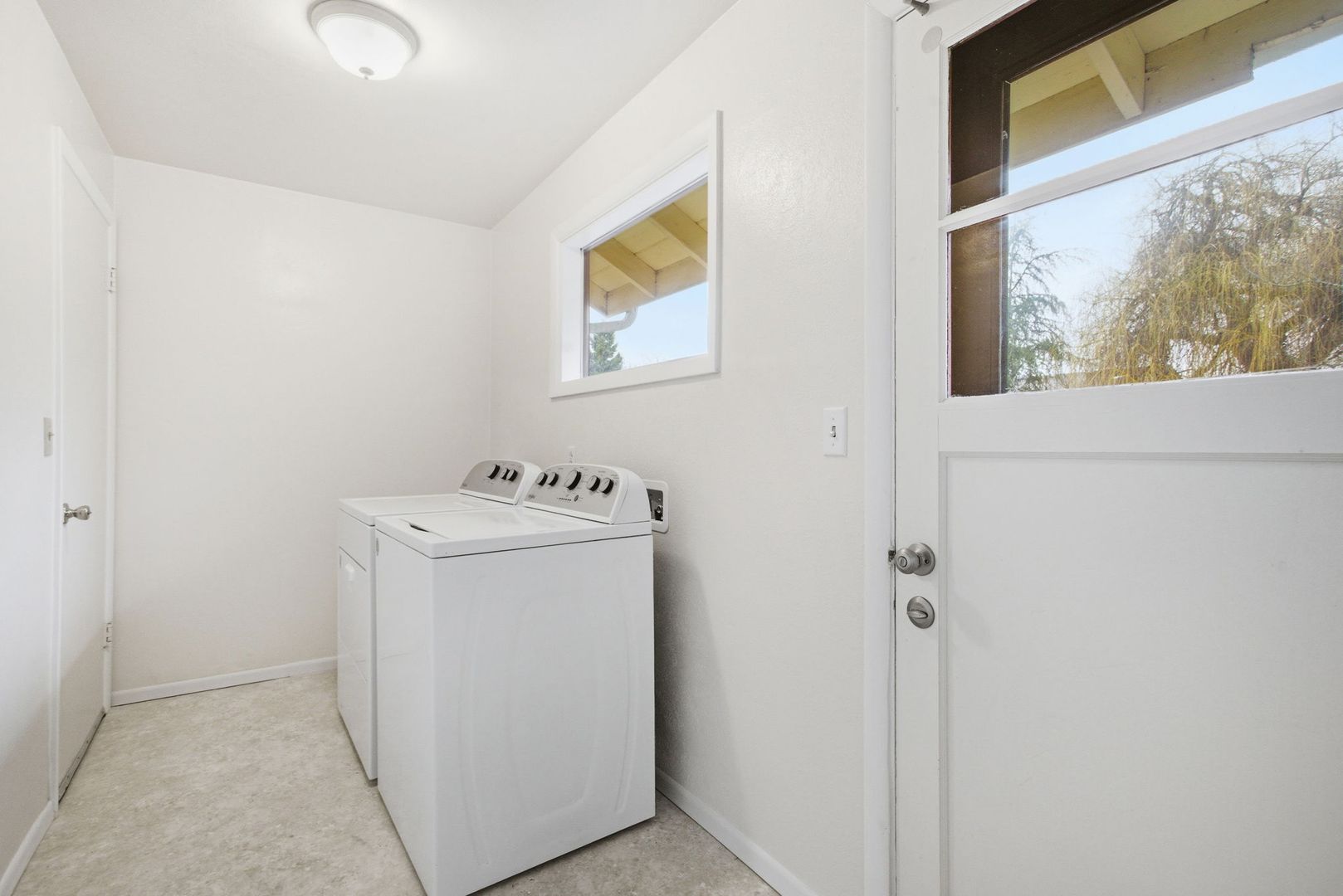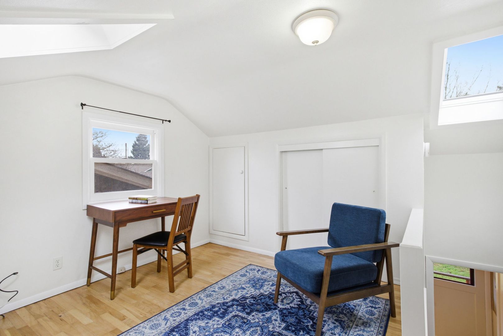 Cute 3 bedroom, 1 bathroom house on quiet street in convenient S. Eugene neighborhood. Hardwood flooring and vinyl throughout. Stainless dishwasher and range along with updated countertops in the kitchen. Skylights in 2nd story bedroom offer ample natural light. Ductless heat pump with A/C and Fireplace. Washer/Dryer included. 1 car garage & private fenced backyard. *House does not come furnished*
