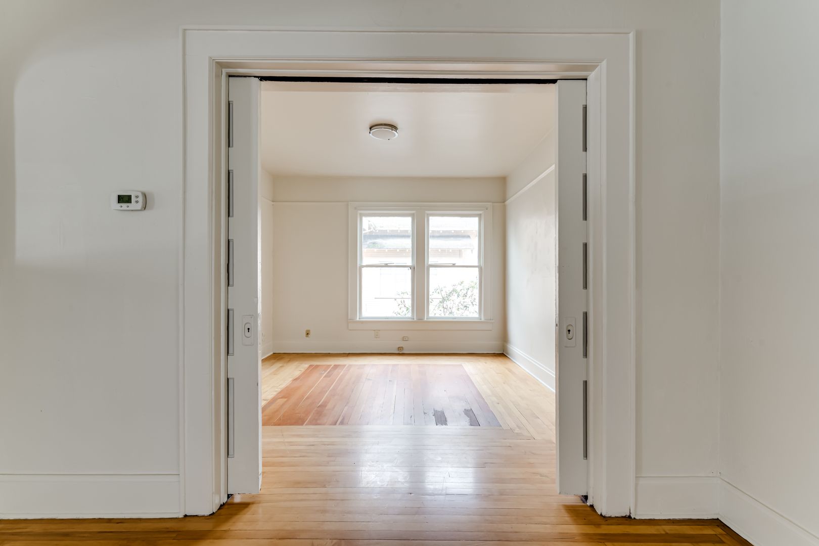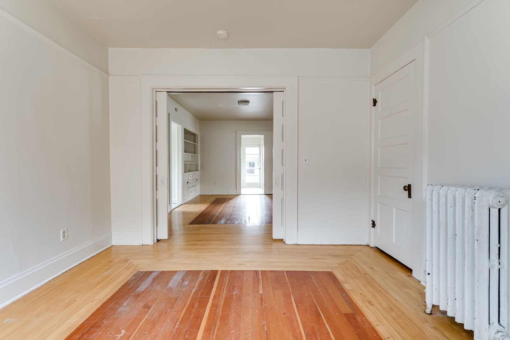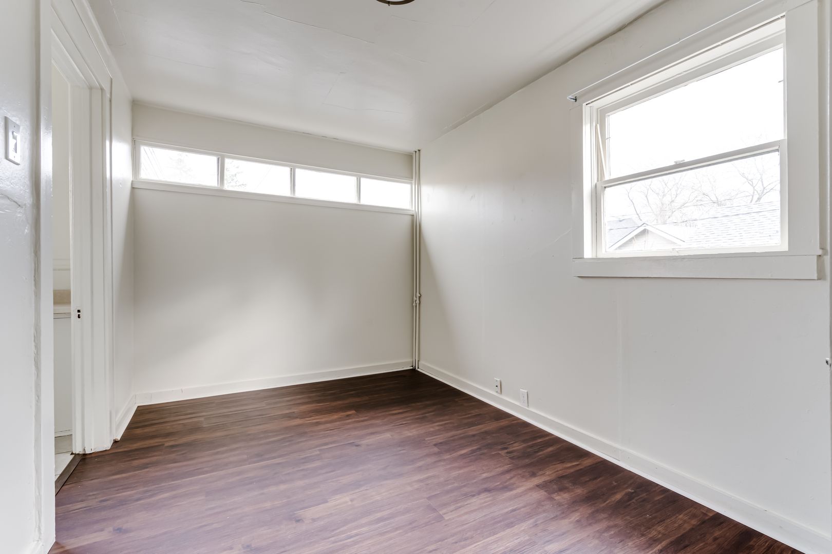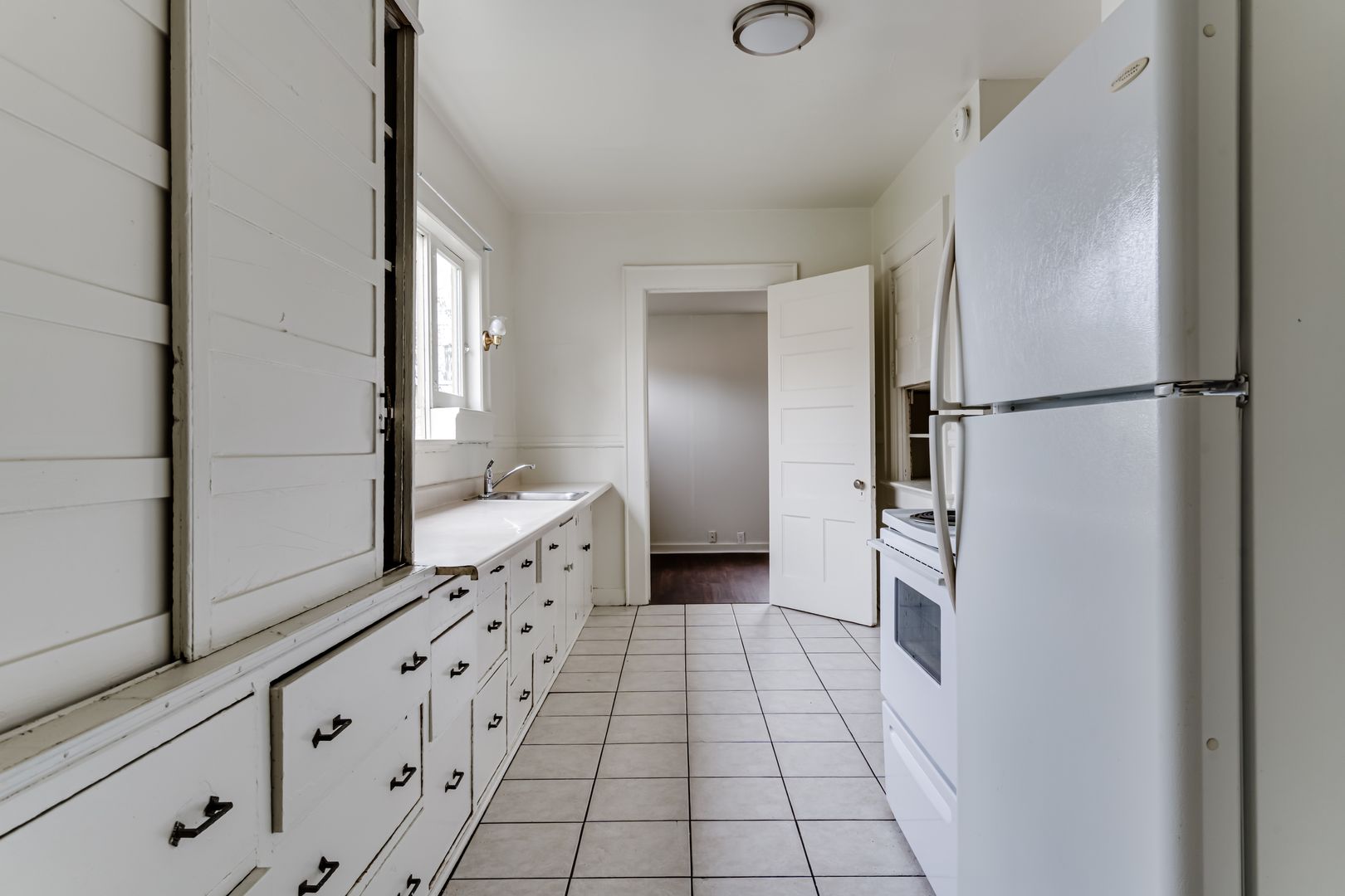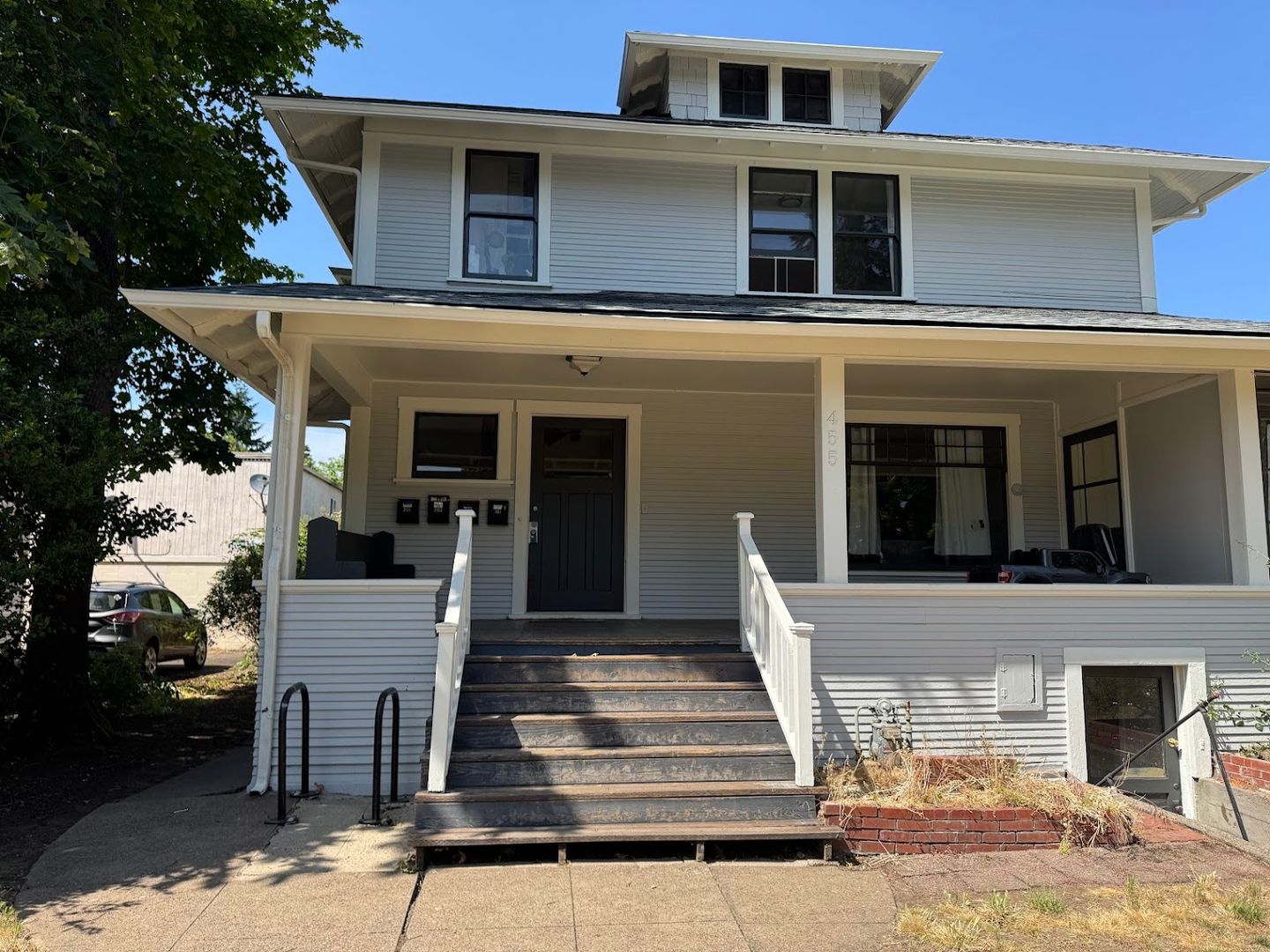 Large 4-bedroom unit in historical American 4-square Craftsman. The unit occupies the entirety of the ground floor of this quiet 4plex. High ceilings with two-toned original craftsman hardwood flooring in main living areas and in the largest bedroom with double doors. Newer Luxury Vinyl Plank flooring in the remaining 3 bedrooms. Beautiful hand painted original cabinetry connecting the dining room to a kitchen pass-through. Full size kitchen with ample storage, complete with full size stove and fridge. There is a full bathroom, along with a refurbished water closet, and a dedicated bathtub room and common sink vanity. On site laundry available.