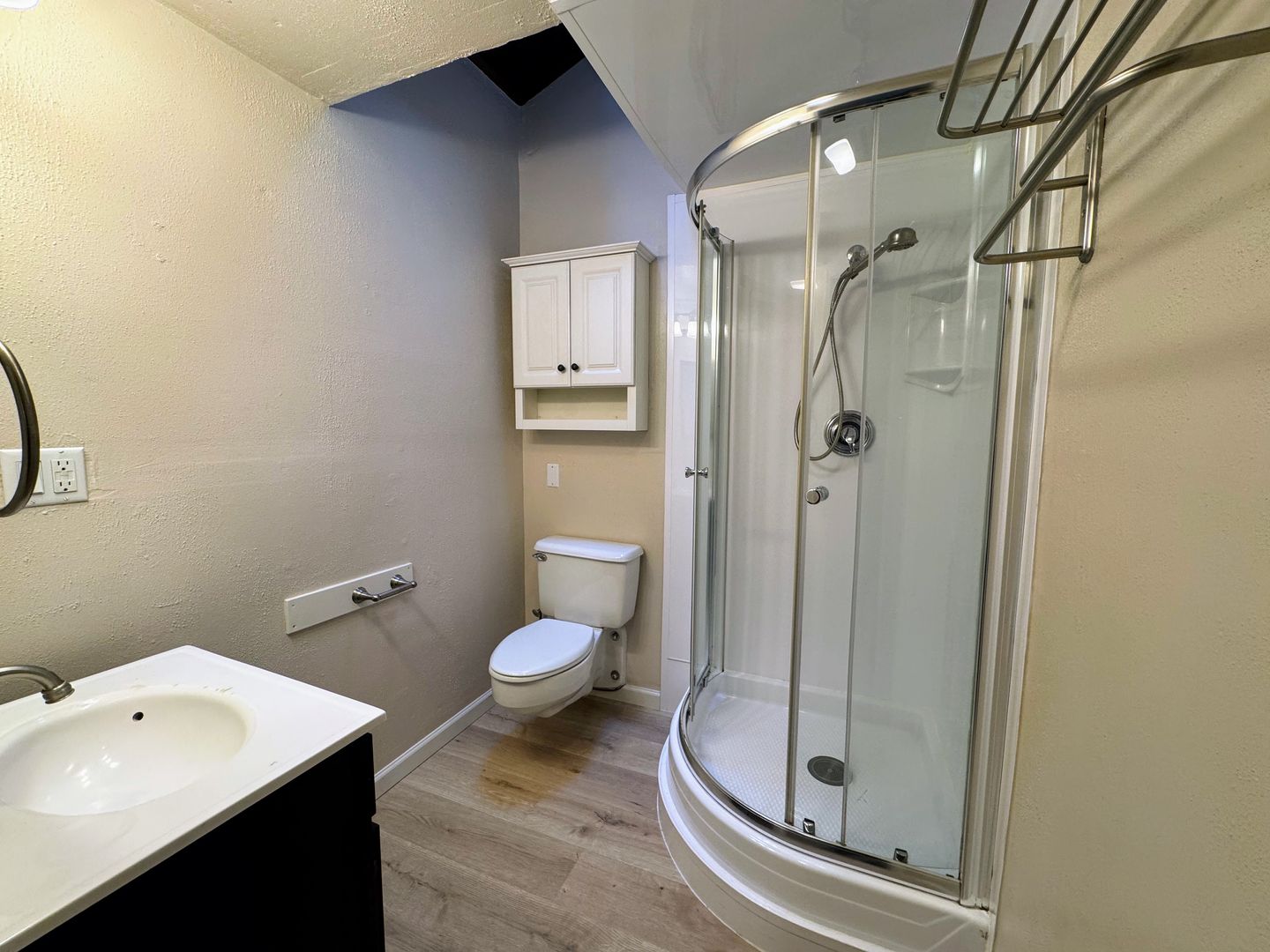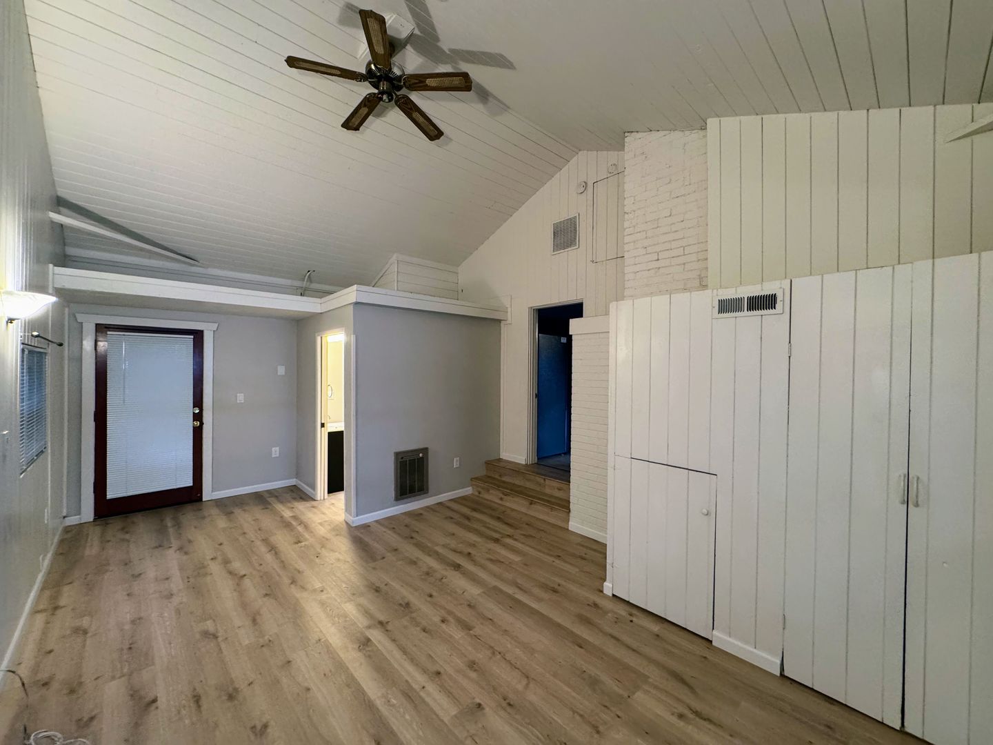 The largest bedroom off kitchen has vaulted ceilings, its own bathroom, new flooring and its own door to backyard. It could also be a family room or office with privacy from rest of house.