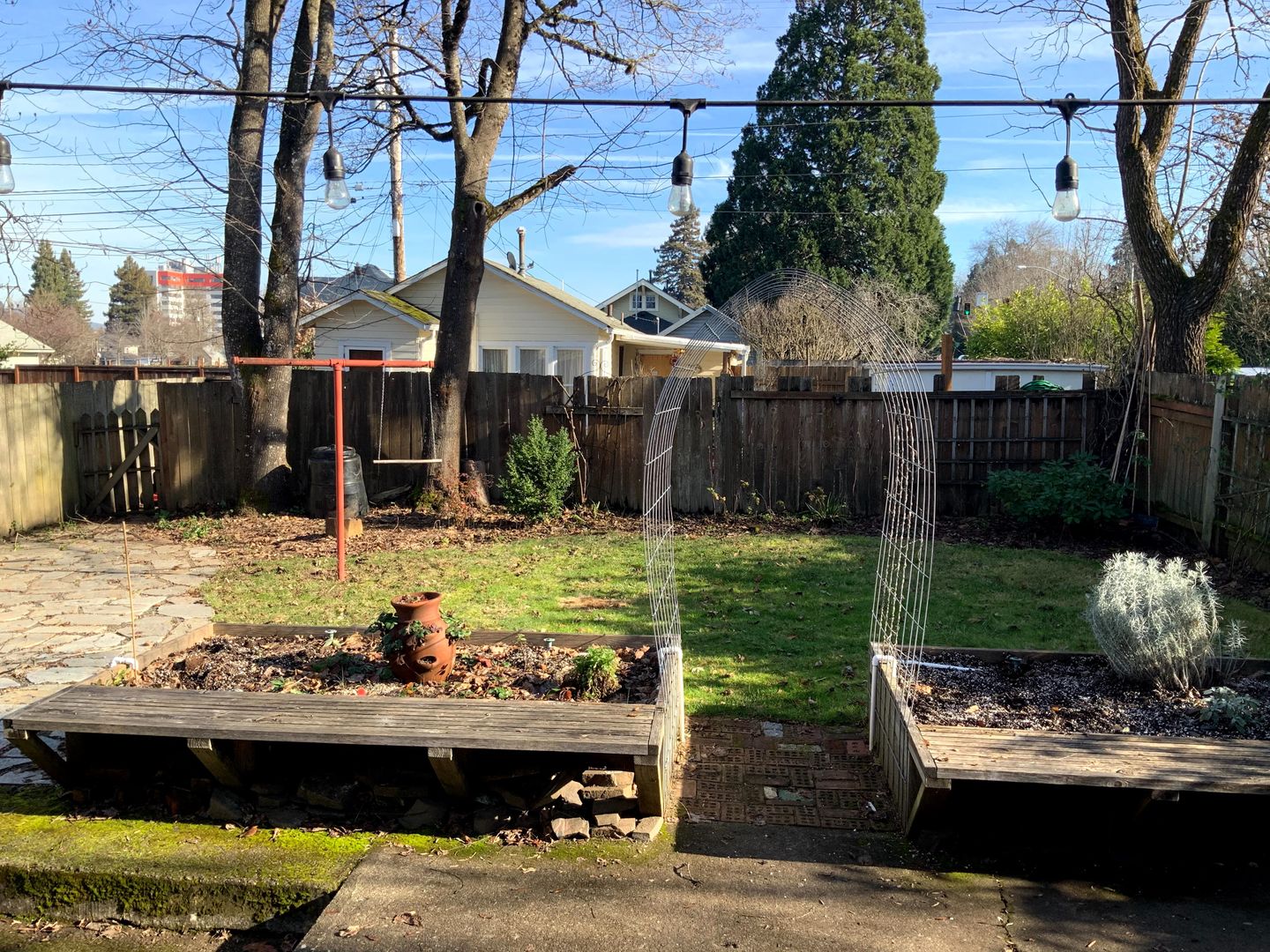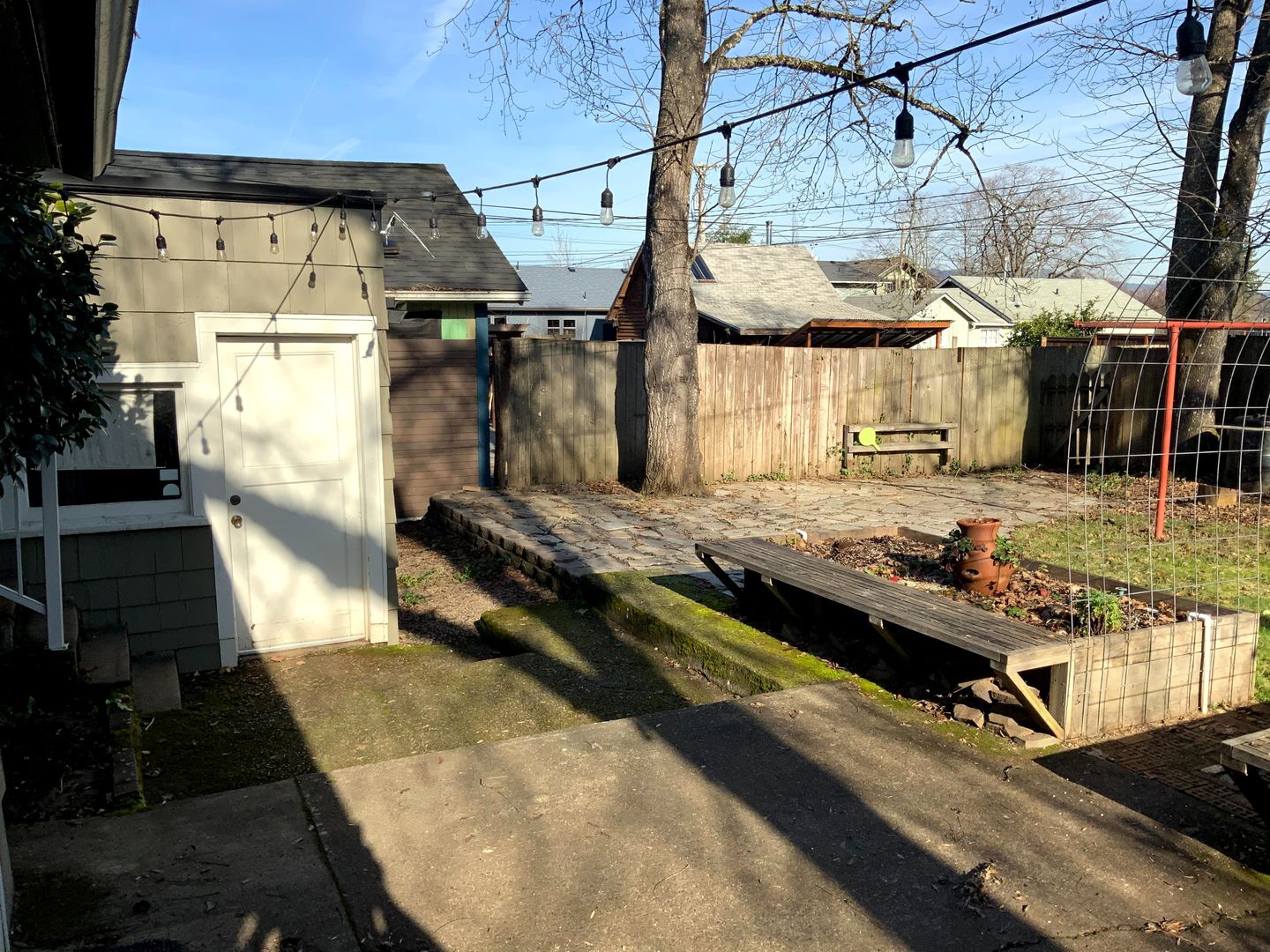4 bedroom, 1.5 bathroom house off 18th ave. Excellent location near parks, schools, shopping and more. Straight shot to UO campus. Main level with kitchen, designated dining room, living room with fireplace, 2 + bedrooms and full bathroom. Drop level den or extra bedroom on rear of house has 1/2 bath and private access from backyard. Spacious upper loft bedroom area with additional storage. Partially finished basement with w/d hookups (units provided 'as is') and 2 extra storage or 'hobby' rooms. Forced air heat and A/C. Attached 1 car garage with built in work spaces. Fenced back yard and patio area.
