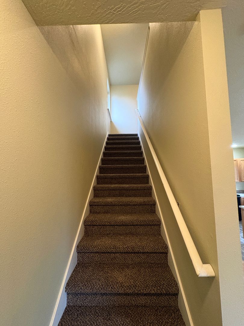 3 bedroom, 2 bathroom duplex in Eugene. Close to the conveniences of town and Bailey Hill Elementary and Churchill High school. Fresh paint throughout with new blinds and carpet. Open floor plan kitchen with new kitchen countertops and living areas with half bath downstairs. 3 bedrooms upstairs including a master and full separate shared bathroom. Forced air heat pump system with A/C for climate controlled comfort year round. Driveway and 1 car garage with W/D hookups. Easy to maintain landscaping with small side yard which is fenced for privacy and safety.